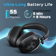 • 55H Battery & Fast Charging – Power through long hours with up to 55 hours of playtime. USB-C quick charge delivers hours of use in minutes. Comes with a Bluetooth headphones with case for easy portability.
