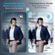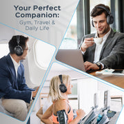 • Headphones for Gym with Hybrid ANC – Enjoy pure sound with hybrid active noise cancellation (30dB), blocking distractions in any setting. These over ear headphones with mic are ideal for headphones for airplane travel, workouts, and daily use.